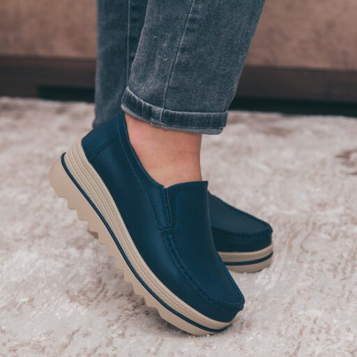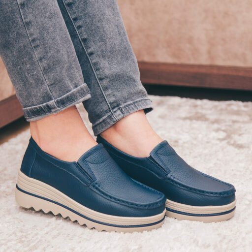 Pantofi Casual Dama mm219 Albastru din piele naturala