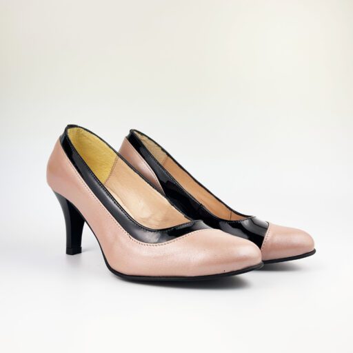 Pantofi Eleganti Dama 790 Negru-Bej deschis din piele naturala