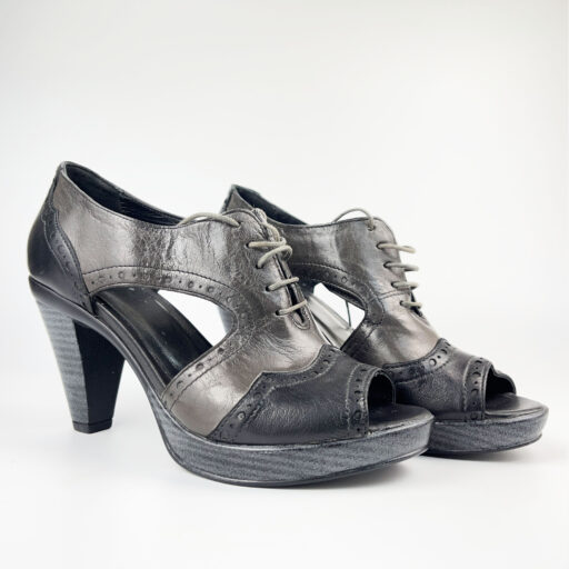 Sandale Dama 101 Negru+Gri din piele naturala
